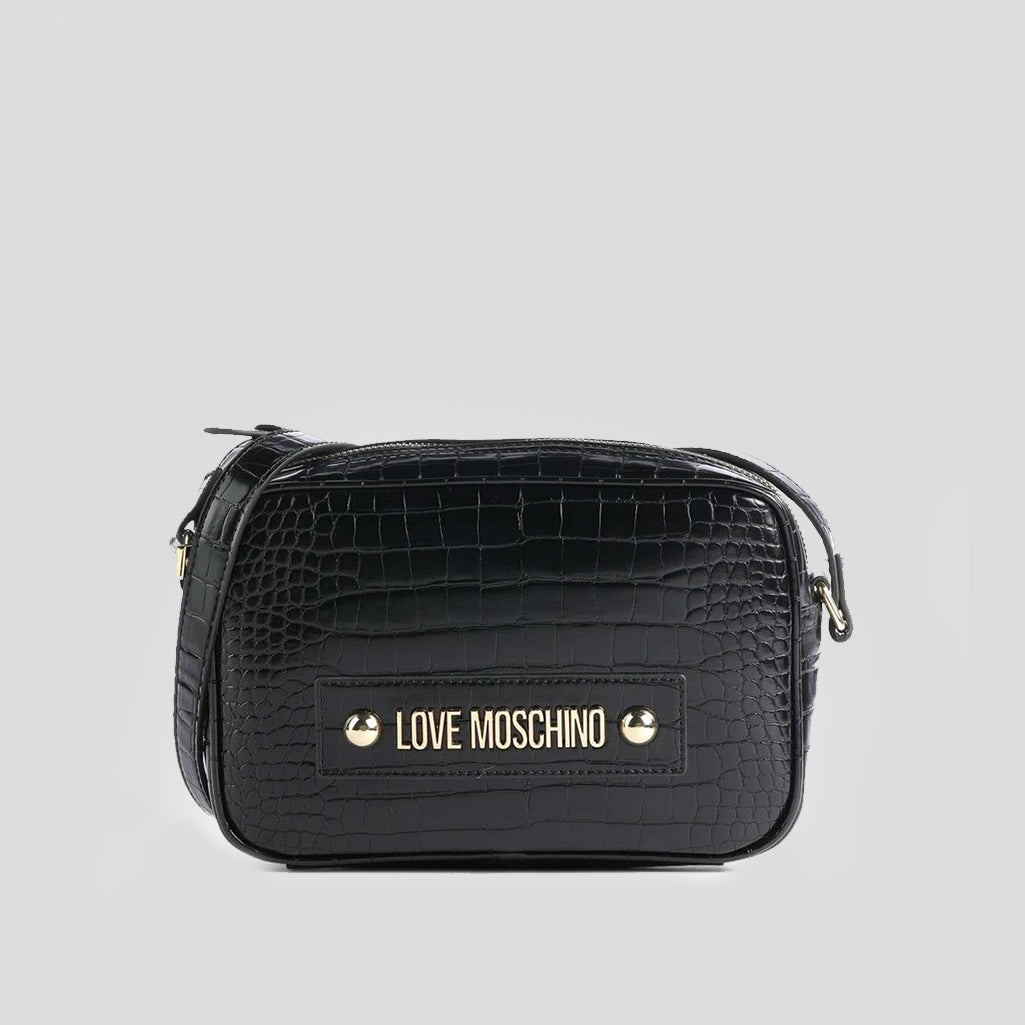 Love Moschino Borsa A Tracolla Donna Big Logo Croco Nero - Black
