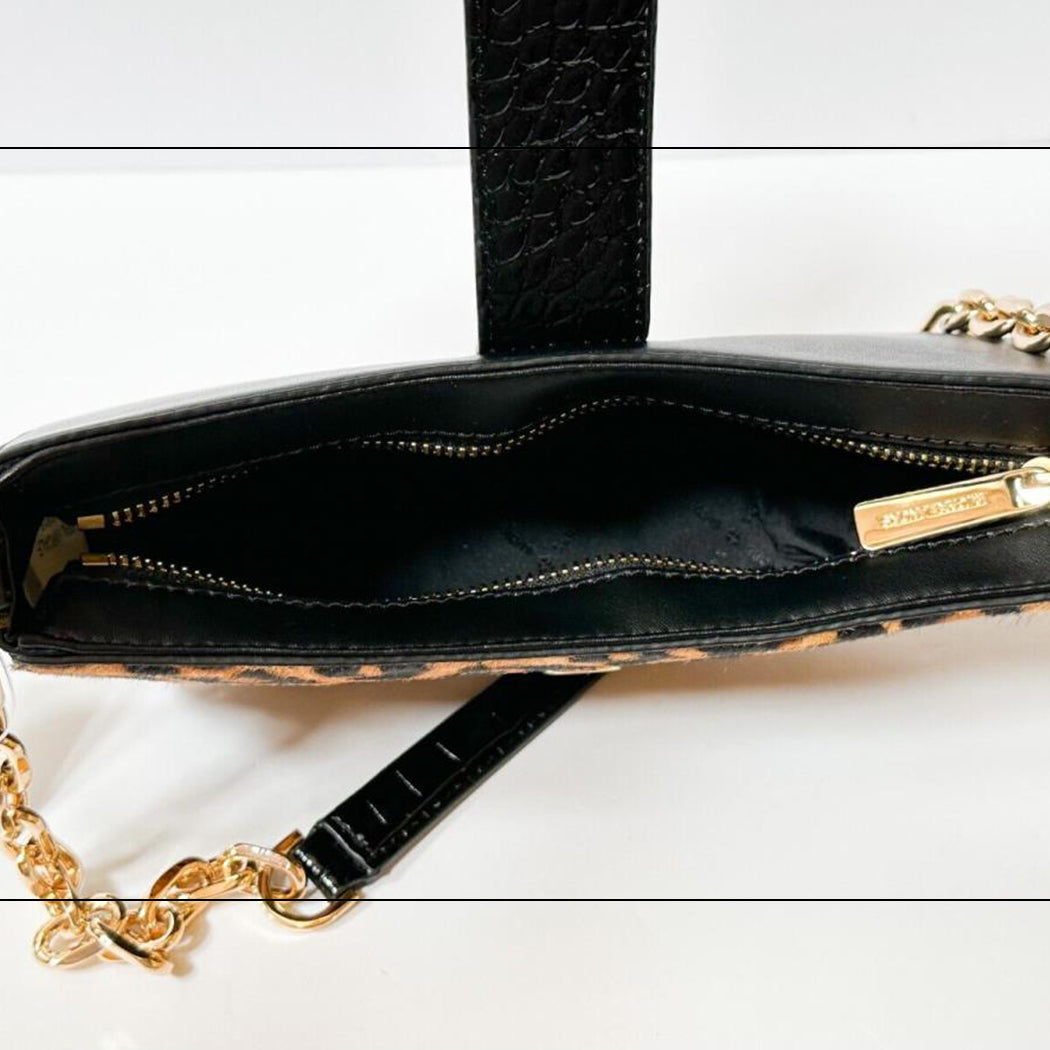 Michael Kors Carmen SM Exotic Embossed Shoulder Chain Bag Black Multi Haircalf