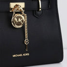 The Michael Kors Hamilton Small Pebbled Leather Satchel in Black is a classic and elegant handbag that offers both style and functionality. Here are the key features of this satchel: