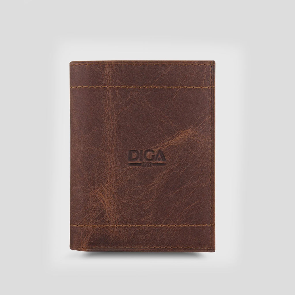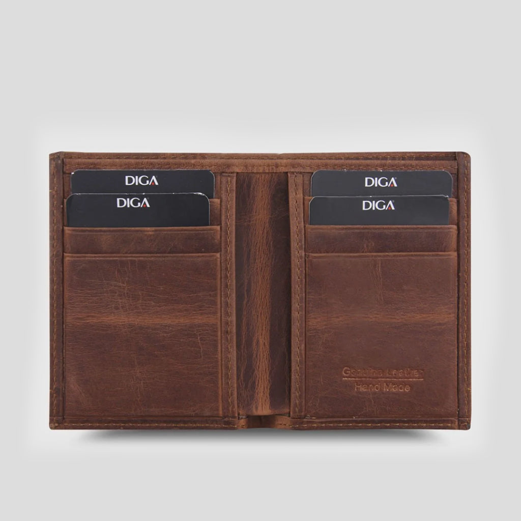 Introducing the DIGA Vertical Plain Genuine Leather Crazy Tan Men's Wallet, a testament to timeless style and craftsmanship. Meticulously crafted with utmost precision, this wallet embodies the essence of genuine leather luxury.